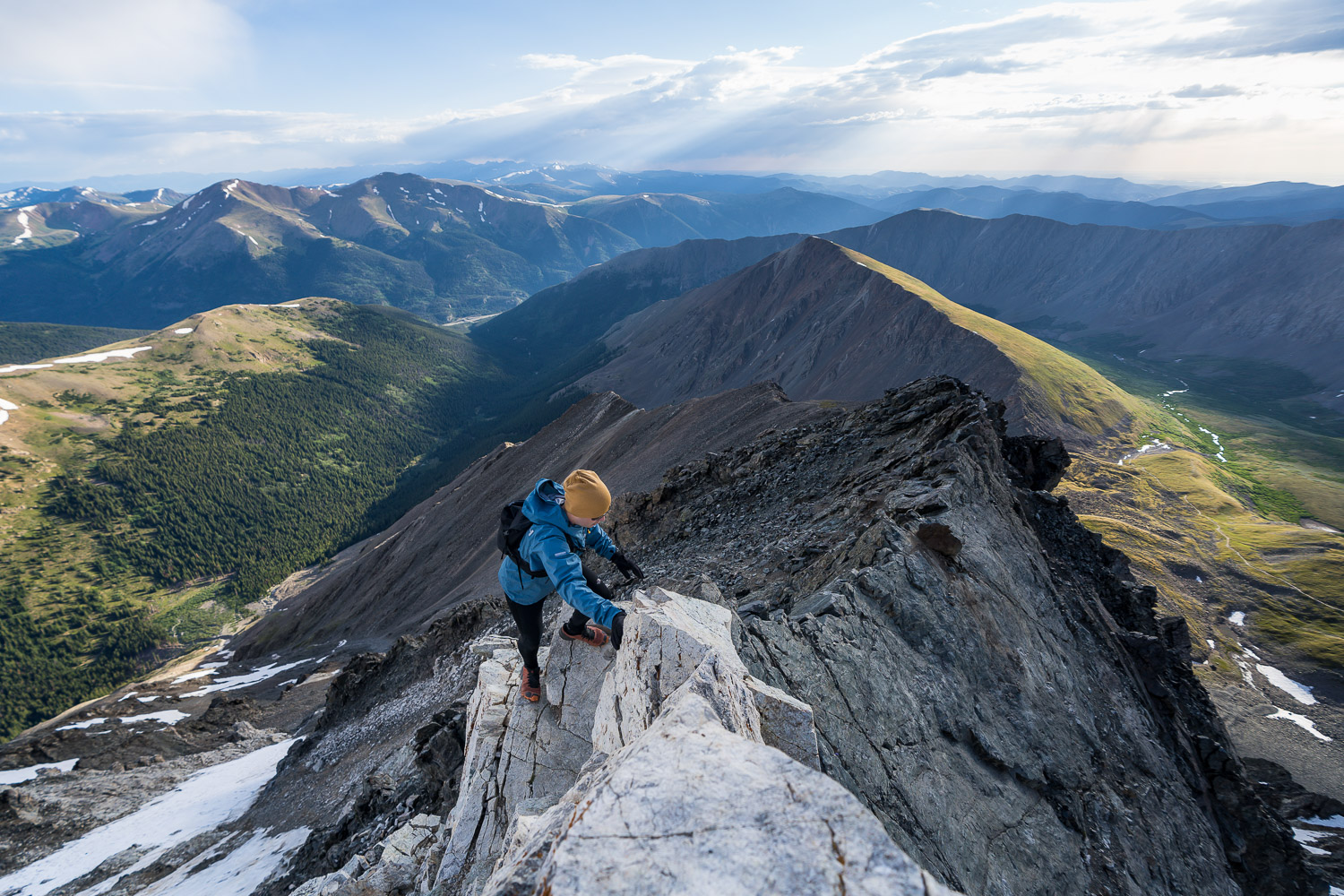 Despite spraining my ankle on the last half mile and threatening all the effort I had put into my training, Kelso Ridge to Torreys Peak was phenomenal. It’s a fun scramble for experienced rock climbers with a few airy and incredibly picturesque sections.