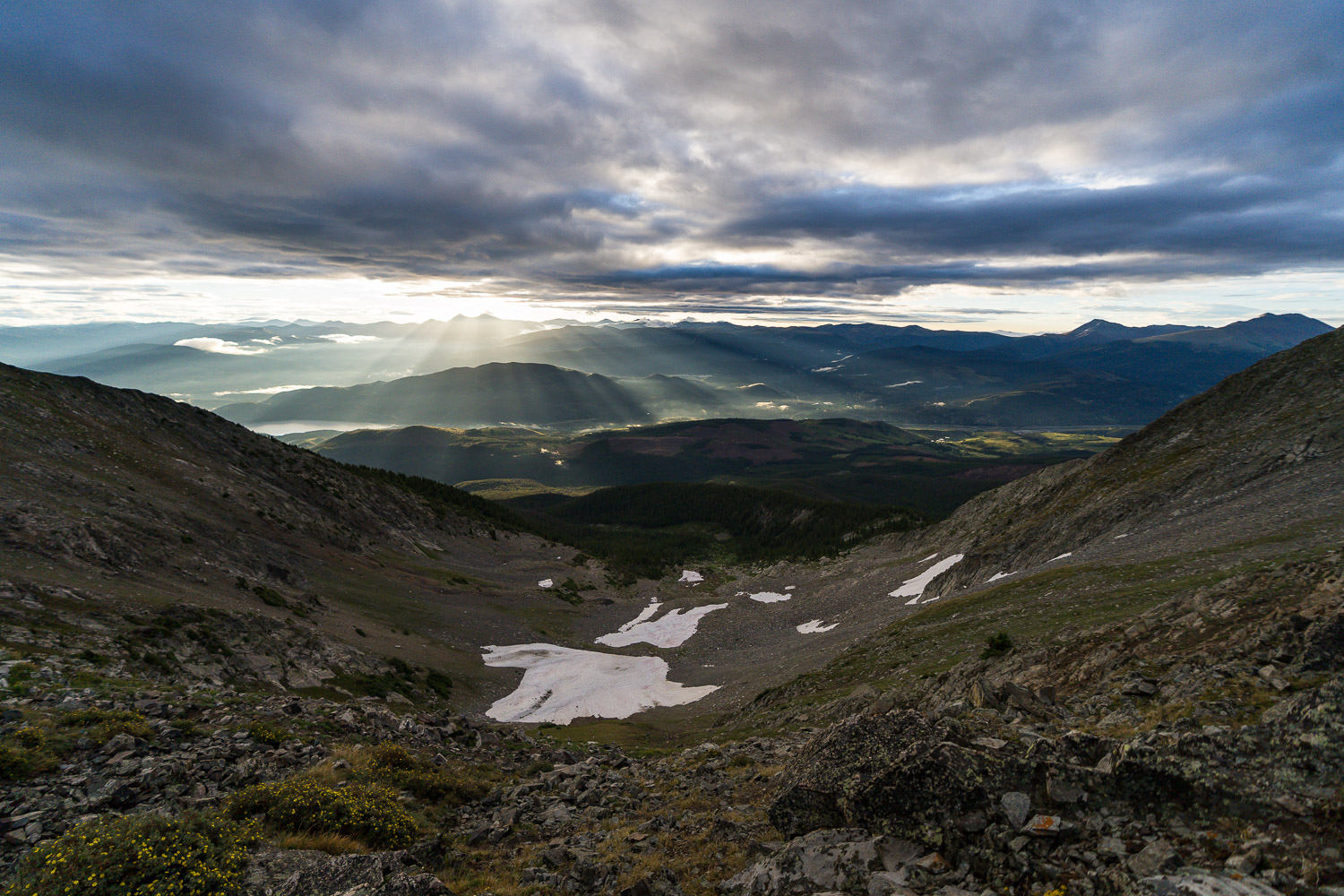 I recently survived running on mountain tops. The objective was the Ten Mile Range traverse from Frisco to Breckenridge, Colorado. The result was over 7000 feet of elevation gain and bagging 9 out of 10 peaks before the rain washed us down the mountain.